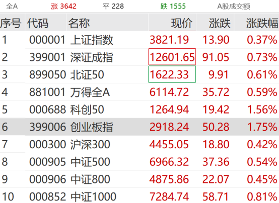9月10日,上证指数低开0.02%,创业板指涨0.77%,科创50指数涨0.64%。截至发稿,A股主要指数全线飘红。
