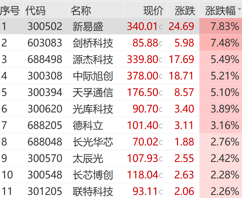 光模块卷土重来,新易盛、剑桥科技涨超7%。